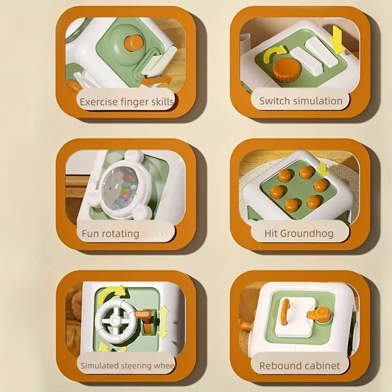 Ova edukativna kocka pruža čak 6 zabavnih i razvojnih aktivnosti koje će zabaviti dijete i potaknuti razvoj motorike, koordinacije i logike.
