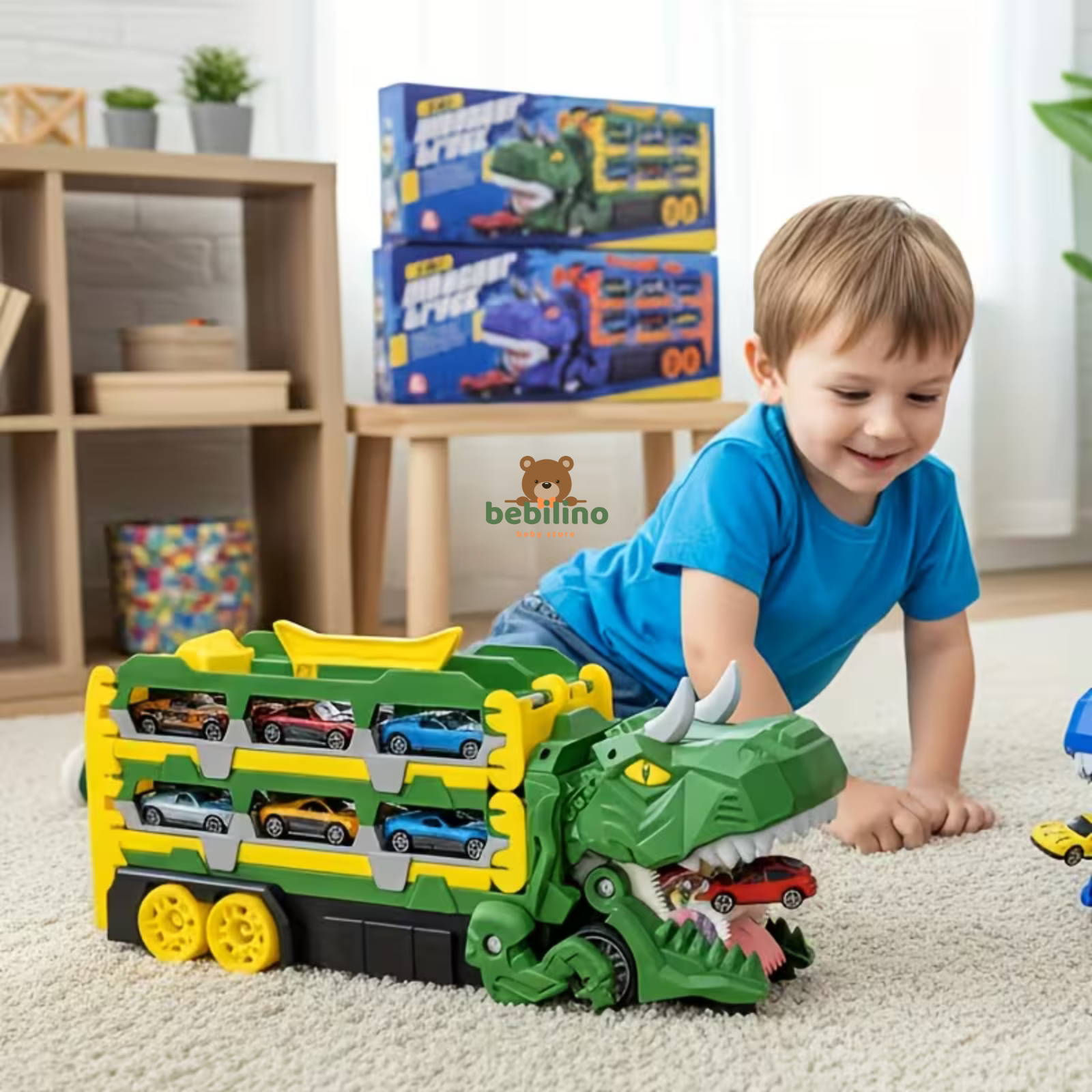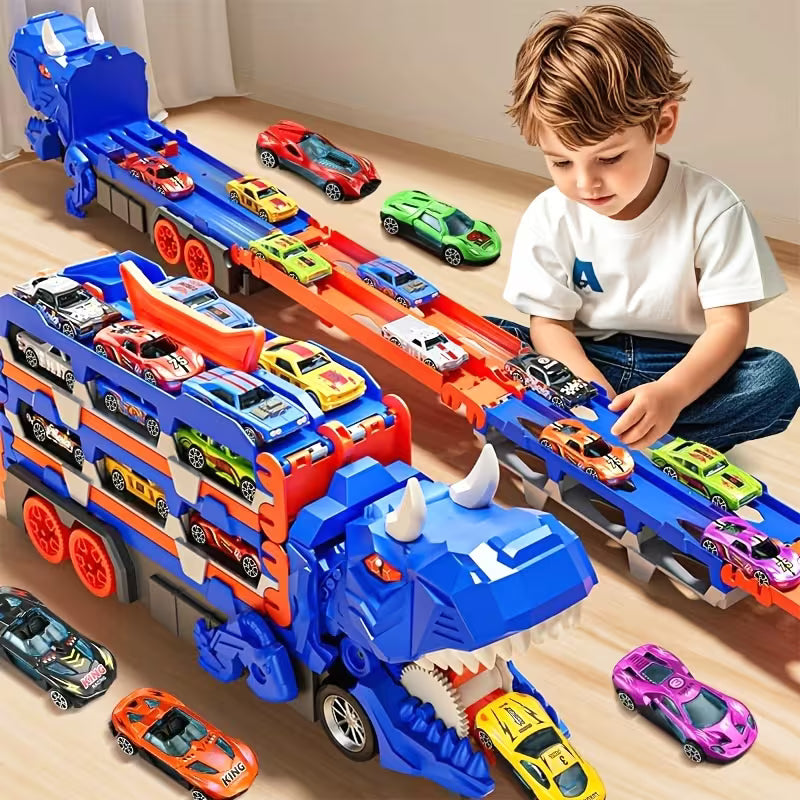Ovaj transformirajući dinosaurus kamion je savršena igračka za mališane koji vole automobile, staze i dinosauruse. Kamion se lako pretvara u gradsku trkaću stazu i garažu, pružajući sate zabavne i kreativne igre.