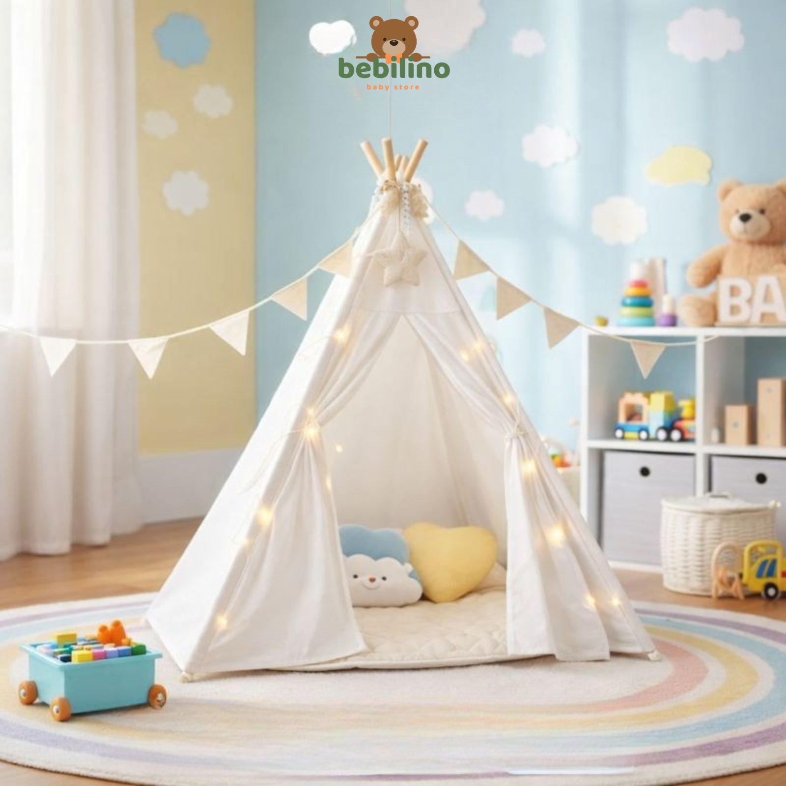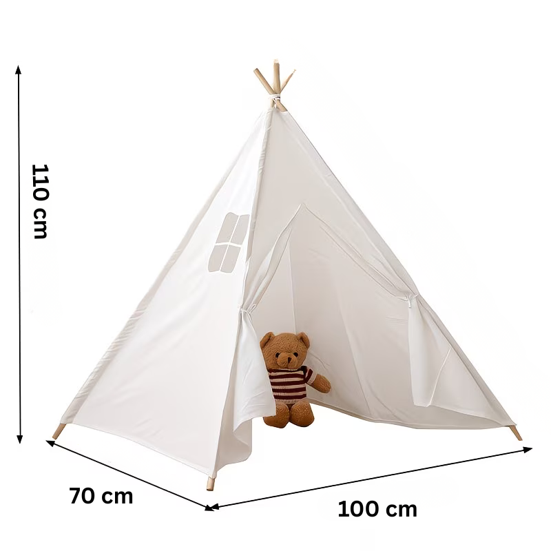 Pretvorite dječiju sobu u čarobni kutak za igru, čitanje i odmor uz ovaj prekrasni dječiji teepee šator. Dizajniran u nježnim, neutralnim tonovima, savršeno se uklapa u svaki interijer i stvara siguran, udoban prostor u kojem djeca mogu razvijati maštu i kreativnost.
