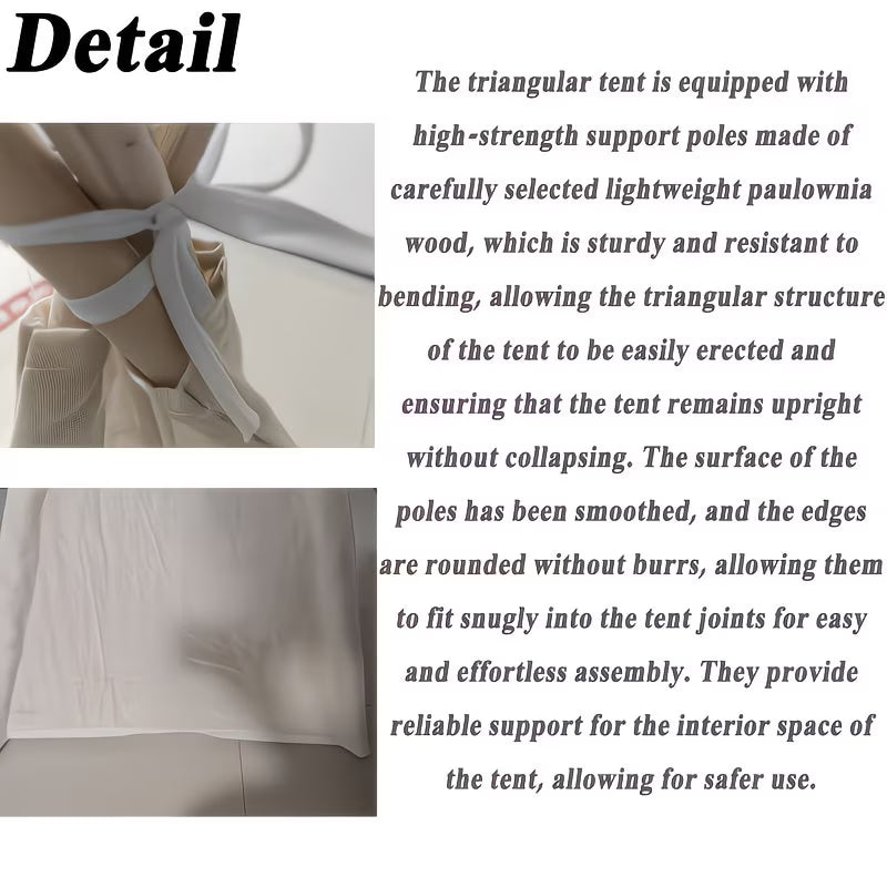 Šator je izrađen od kvalitetne tkanine i stabilne drvene konstrukcije, što ga čini sigurnim i dugotrajnim za svakodnevnu igru. Idealan je za samostalnu igru, opuštanje ili zajedničke trenutke s roditeljima.