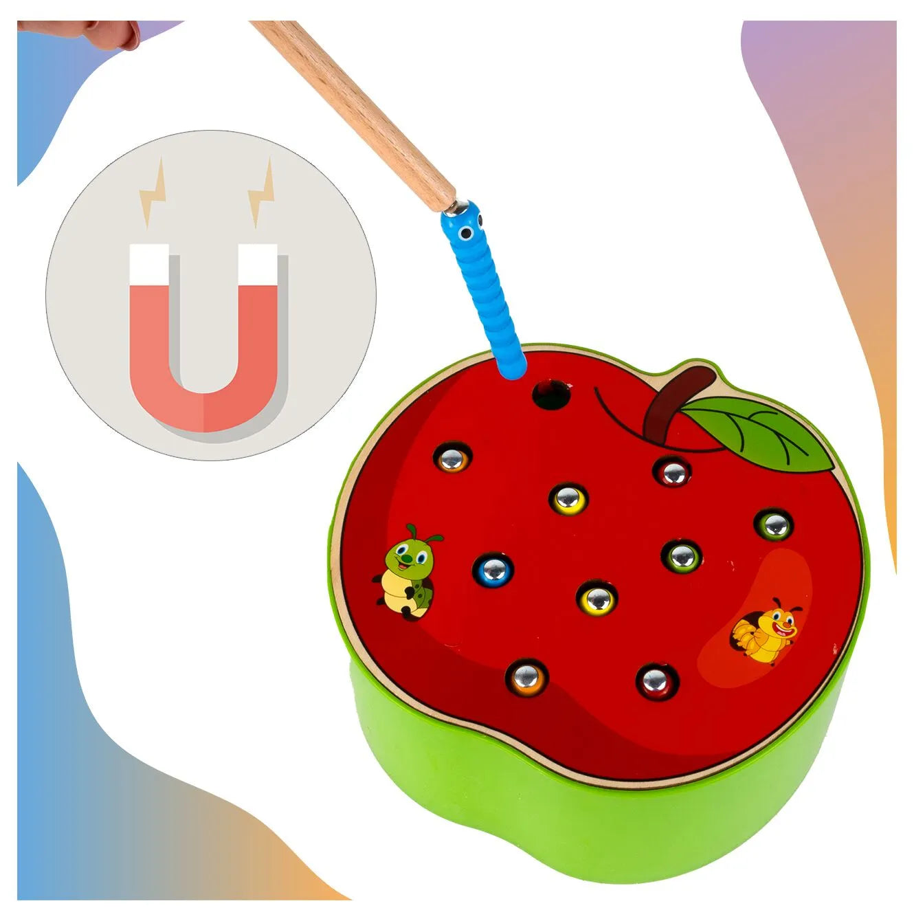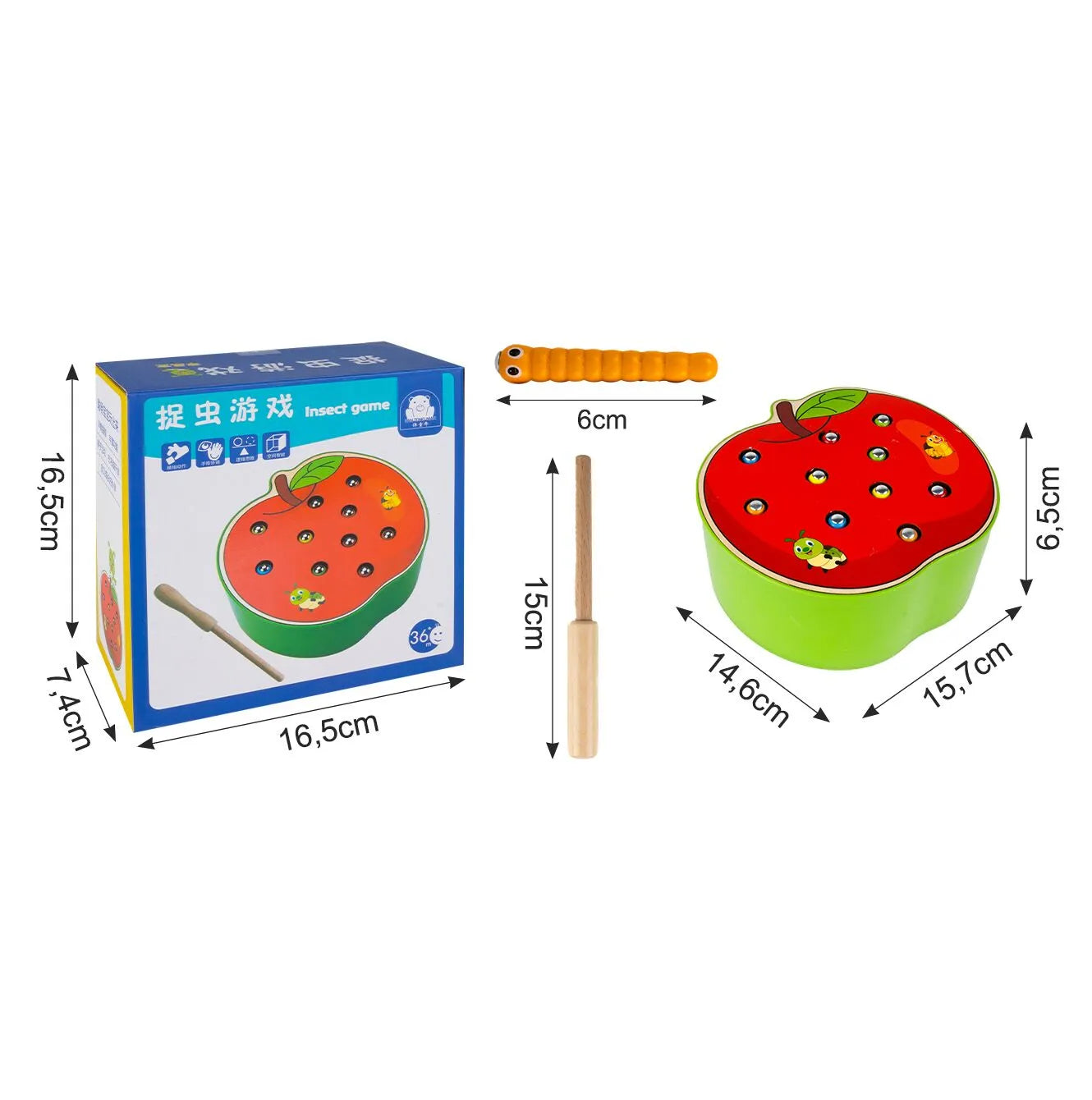 ✅ Set sadrži drvenu jabuku s rupicama, magnetne crviće i drvenu štapić-kliješta