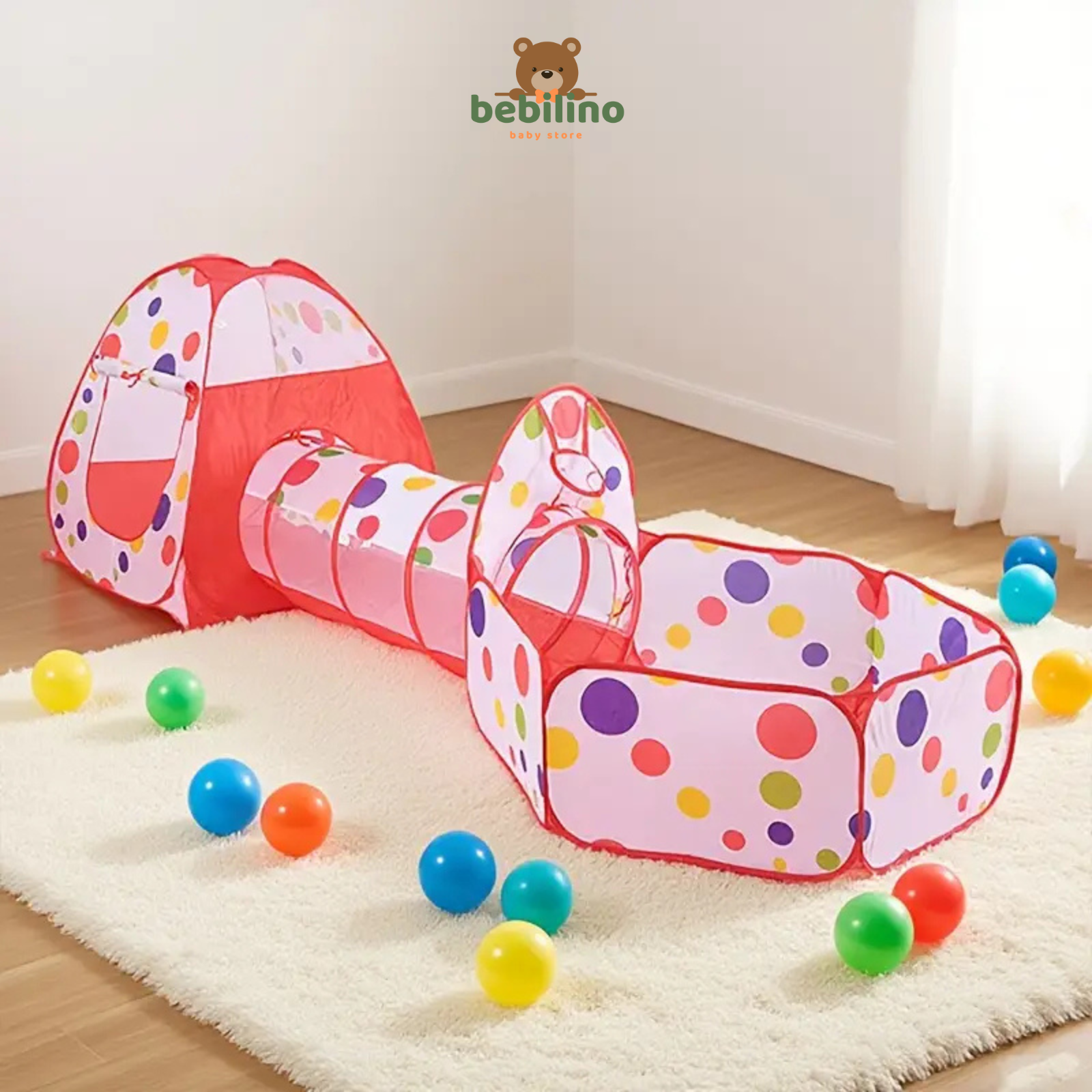 ⛺ Šator s tunelom i bazenom za loptice – 3u1 zabavni set