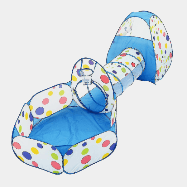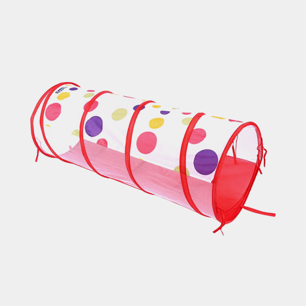 Ovaj šator s tunelom i bazenom za loptice pruža sate maštovite igre, potiče kretanje, koordinaciju i socijalne vještine kod djece. Izrađen je od laganog i sigurnog materijala, lako se sklapa i prenosi, a živopisne boje (plava i crvena) čine ga pravim mamcem za dječiju pažnju.