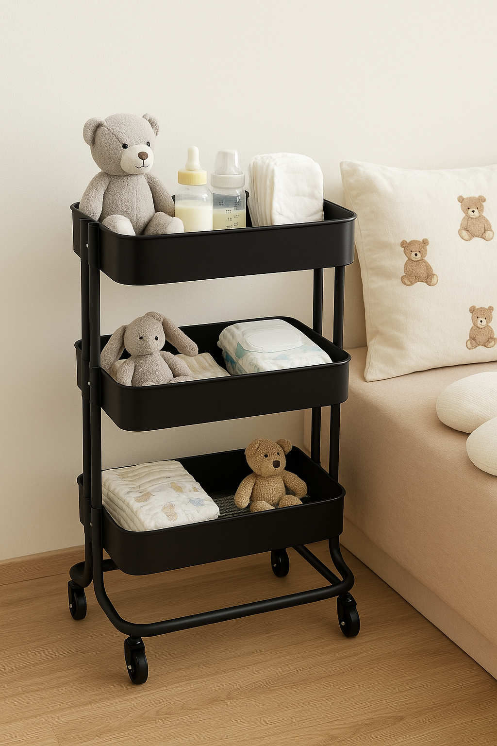 Uz ova kolica na točkiće, sve što ti je potrebno uvijek je nadohvat ruke – uredno, praktično i s puno stila! ✨